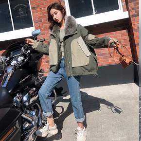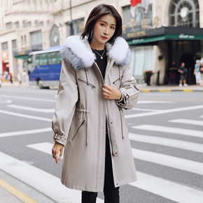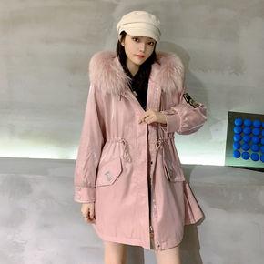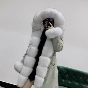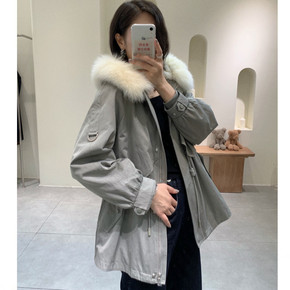 2020秋冬韩版狐狸毛领皮草外套派克服大衣獭兔毛内...