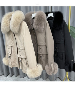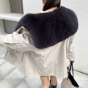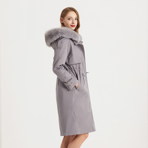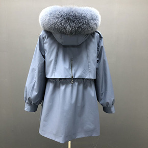 2021年冬新款海宁皮草狐狸毛毛海军领兔毛内胆派克...