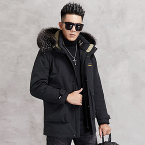 冬季新款派克服男士休闲银狐毛领连帽拉链皮草水貂保暖...