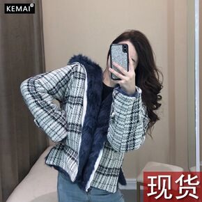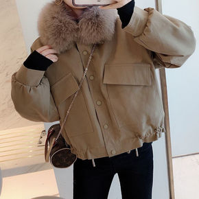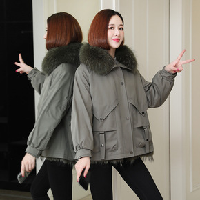 派克服女新款 獭兔毛内胆狐狸毛领小个子短款皮草外套...