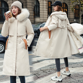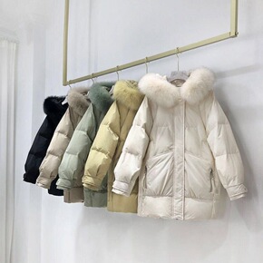 白鸭绒 大毛领新款羽绒服女学生韩版中长款修身宽松外...