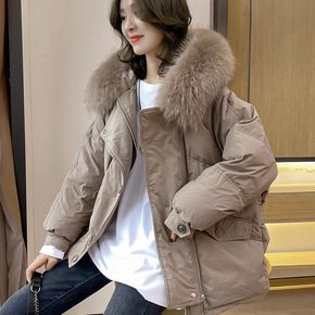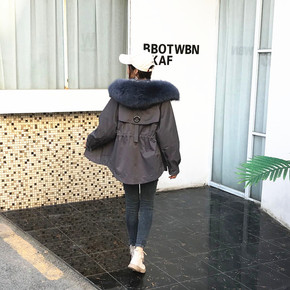 2021秋冬新款真狐狸毛领可拆外套宽松羽绒内胆派克...