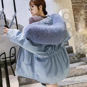 工装派克棉服女2021新款韩版宽松可拆卸狐狸毛加绒...