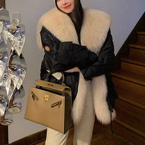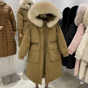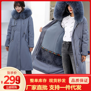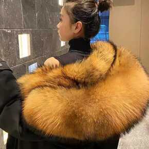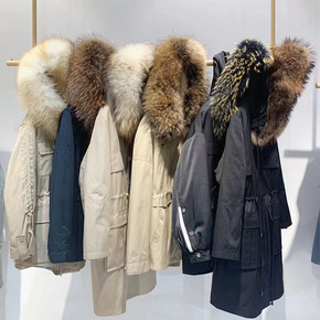 2022年冬新款狐狸大毛领羽绒服派克服可拆卸女真毛...