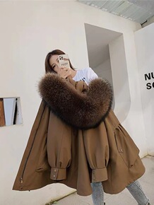 【卖断不补】派克服2021冬新款可拆卸狐狸毛领兔毛...