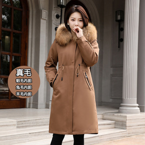 妈妈冬装羽绒服女中长款2021新款派克服中老年狐狸...