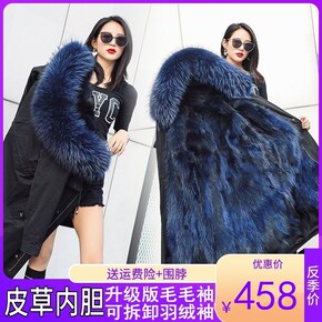韩版通勤2022新款 獭兔毛皮草内胆狐狸毛领 可拆...