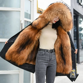 冬季派克服2021新款加绒加厚内胆可拆卸狐狸皮毛一...