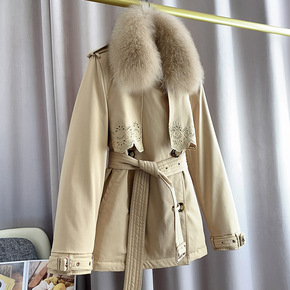 鹅绒服出清品质狐狸毛领风衣款派克服短羽绒服女外套批...