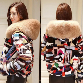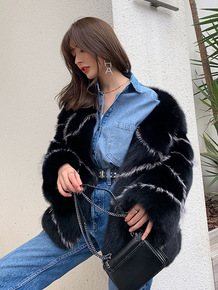 2021冬新款牛仔拼接狐狸毛皮草外套女年轻款立领网...