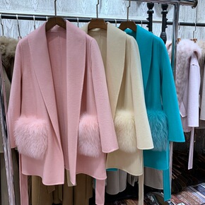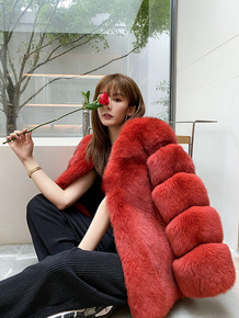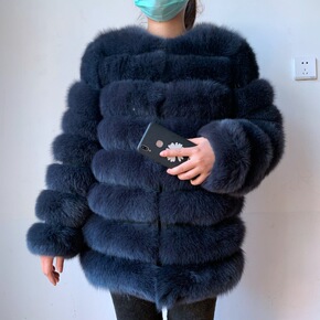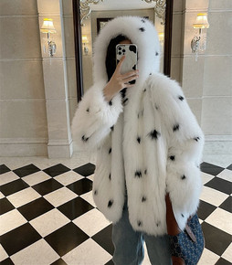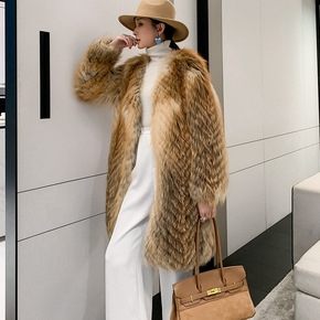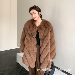 2021年新款狐狸毛皮草外套女中长款金岛狐车条工艺...