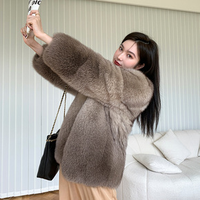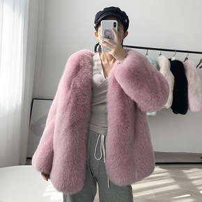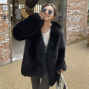 整皮狐狸毛流行皮草外套女皮毛一体年轻中长款大衣20...