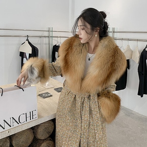 冬季新款红狐狐狸毛大毛领皮草外套女梦中情人中长款粗...