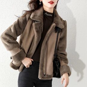 加厚麂皮绒外套女2021冬季新款时尚保暖加绒皮毛一...