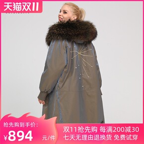 反季清仓夏诗文羽绒服女冬季狐狸毛领长款过膝2021...