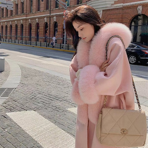 2021新款韩版双面羊毛呢大衣狐狸毛皮草外套斗篷中...
