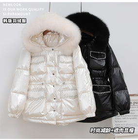 2022冬装新款韩版时尚白鸭绒羽绒服女短款加厚收腰...