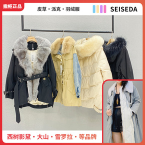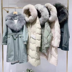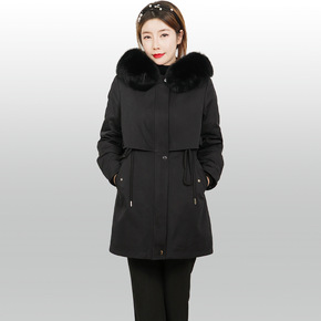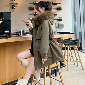 真狐狸毛领派克服女中长款2021新款宽松收腰皮毛一...