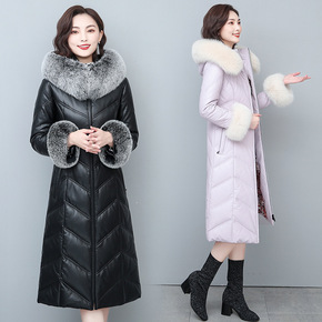 冬海宁真皮皮衣羽绒服女中长款修绵羊皮过膝皮草大码外...