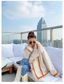 2021汉派专柜售秋冬新款真狐狸毛大毛领仿兔毛加厚...