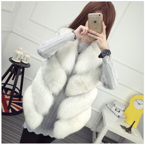 拼接马甲四拼狐狸毛仿皮草外套中长款毛毛背心秋冬保暖...