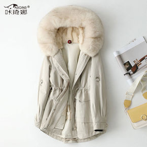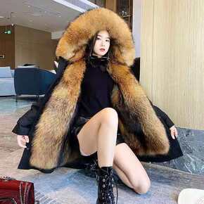 2021冬季新派克服女可拆卸仿狐狸毛内胆中长款皮外...
