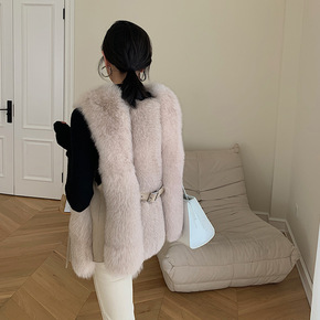 2021年秋冬新款皮草马甲女士短款仿狐狸毛背心时尚...