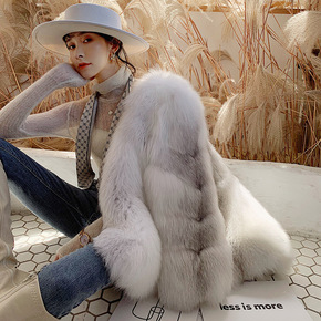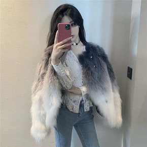Wuuus同款殿堂级渐变全真白狐狐狸毛皮草外套女2...