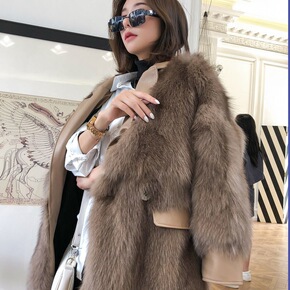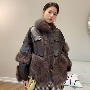 2021冬季新款仿狐狸毛皮草外套女拼接皮衣年轻款皮...