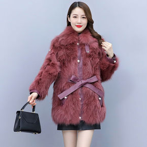 狐狸毛皮草外套女中长款时尚收腰冬款外套2021新款...