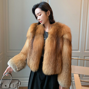 2020冬季新款KO洋气真狐狸毛皮扣立领保暖皮草外...