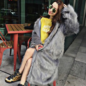 仿羊剪绒大衣仿狐狸毛毛绒外套2021秋冬仿皮草外套...