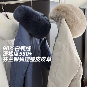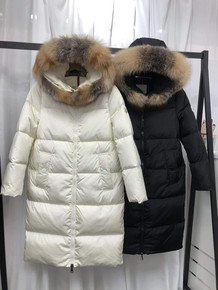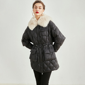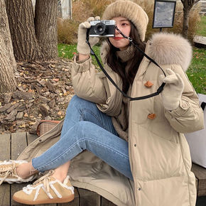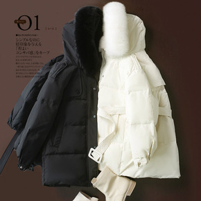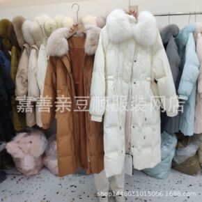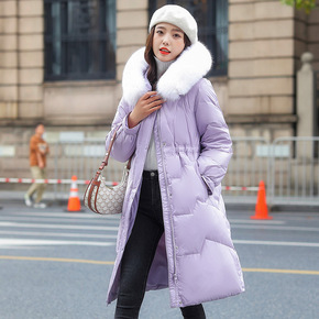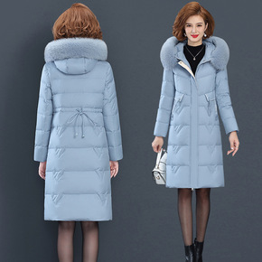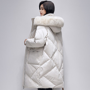 2021年新款白鸭绒羽绒服中长款大毛领过膝羽绒服宽...