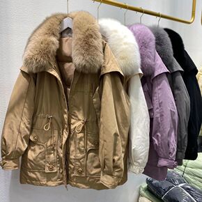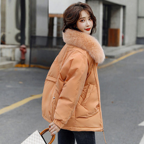 狐狸毛领工装羽绒服女短款加厚2021年新款收腰显瘦...