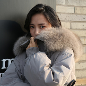 厂家冬装大狐狸毛领加厚腰带收腰显瘦琪蒙口羽绒服女中...