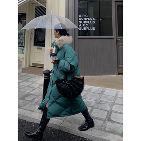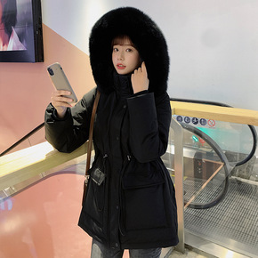 2021冬季新款狐狸毛领加长款羽绒服女加厚收腰显瘦...