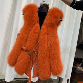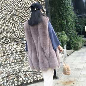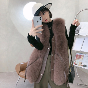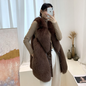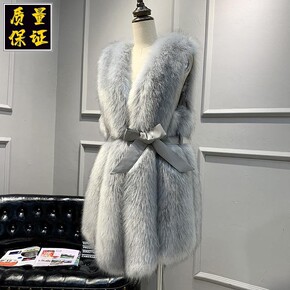 2021秋冬新款整皮狐狸毛中长款皮草马甲背心女外套...