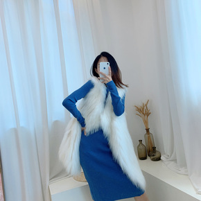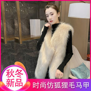 2021秋冬新款韩版仿狐狸毛皮草马甲外套女中长款修...