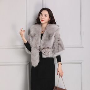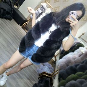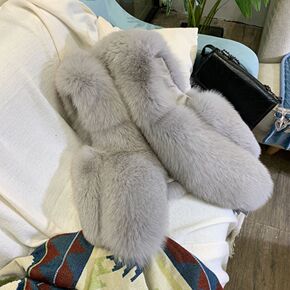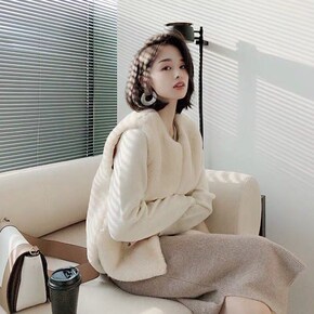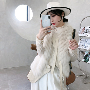 2021海宁新款整皮狐狸毛皮草马甲女绵羊皮真毛时尚...