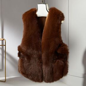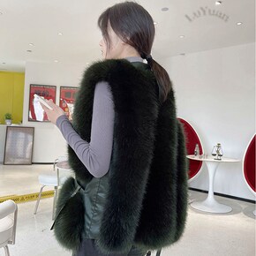 2021年新款秋冬季仿狐狸毛皮草皮毛一体马夹外套减...