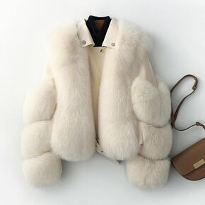 2021冬季新款保暖海宁整皮狐狸毛皮草外套女机车款...