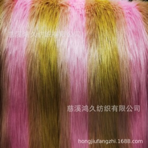 厂家定做粉加棕条提花狐狸毛 服装毛绒 长毛绒面料 ...