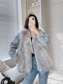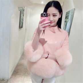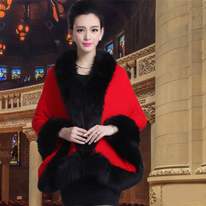 F088#秋冬女装羊毛针织外套坎肩仿貂毛披肩仿狐狸...