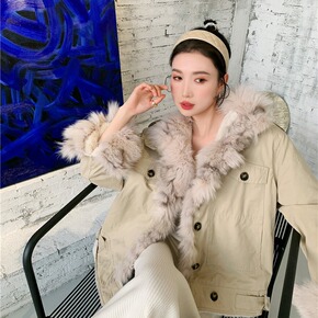2020新款冬派克服女狐狸毛内胆可拆卸大毛领海宁皮...