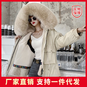 2021冬新款中长款皮草外套女派克服貉子毛领獭兔毛...