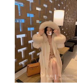 2021秋冬新款直筒双面羊毛大衣狐狸毛连帽毛领呢子...