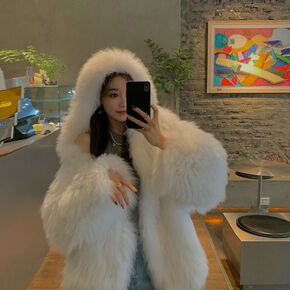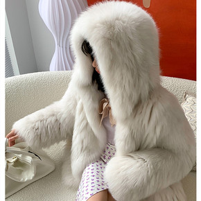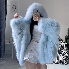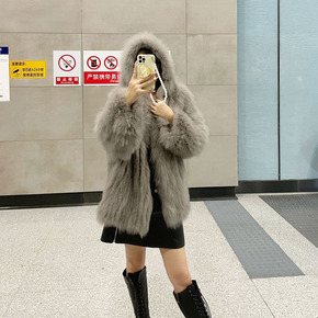 皮草外套女21冬季新款连帽炸街宽松慵懒网红年轻仿狐...