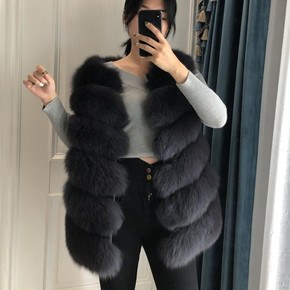 海宁2021新款韩版整皮真狐狸毛马甲背心皮草外套女...