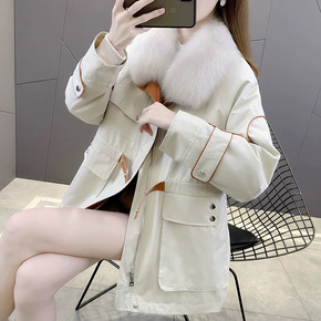 7191新款狐狸毛毛领獭兔毛内胆派克服...