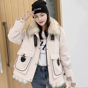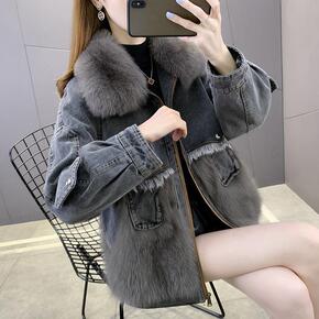 牛仔加棉派克服女2021新款仿狐狸毛皮外套年轻短款...